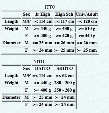 • New specifications on SHINAI length, weight, diameter, position of NAKAYUI, and size of TSUBA: effective April 1, 1999 in Japan (ref. Kenso, Jan 1, 1999)